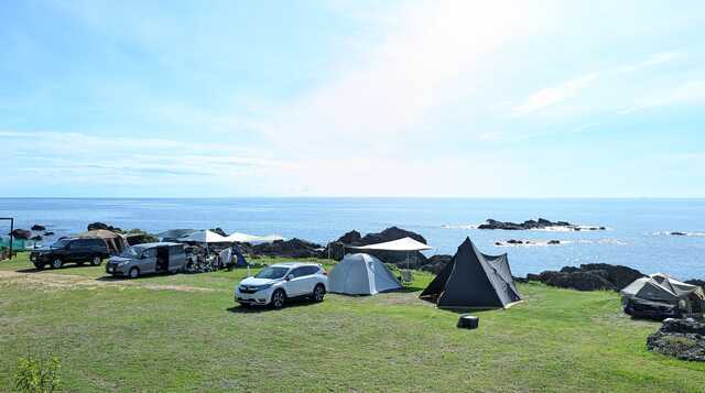 TV番組「西村キャンプ場」お笑いコンビ・バイきんぐ・キャンプ好き芸人・西村さんが太鼓判!眺望地域No.1の全サイト パノラマ・オーシャンビュー!驚くほど海に近い・地球の丸さを体感できる水平線・日本海に沈む夕日・荒波に浸食された奇岩・満天の星・幻想的な漁り火・ 釣りスポット・磯遊び・サウナ付き天然温泉や砂浜ビーチまで3分・ドッグラン・Free Wi-Fi・ 天然温泉サウナ入浴券付きプラン・越前海岸「地魚のお刺身盛り」のケータリング
